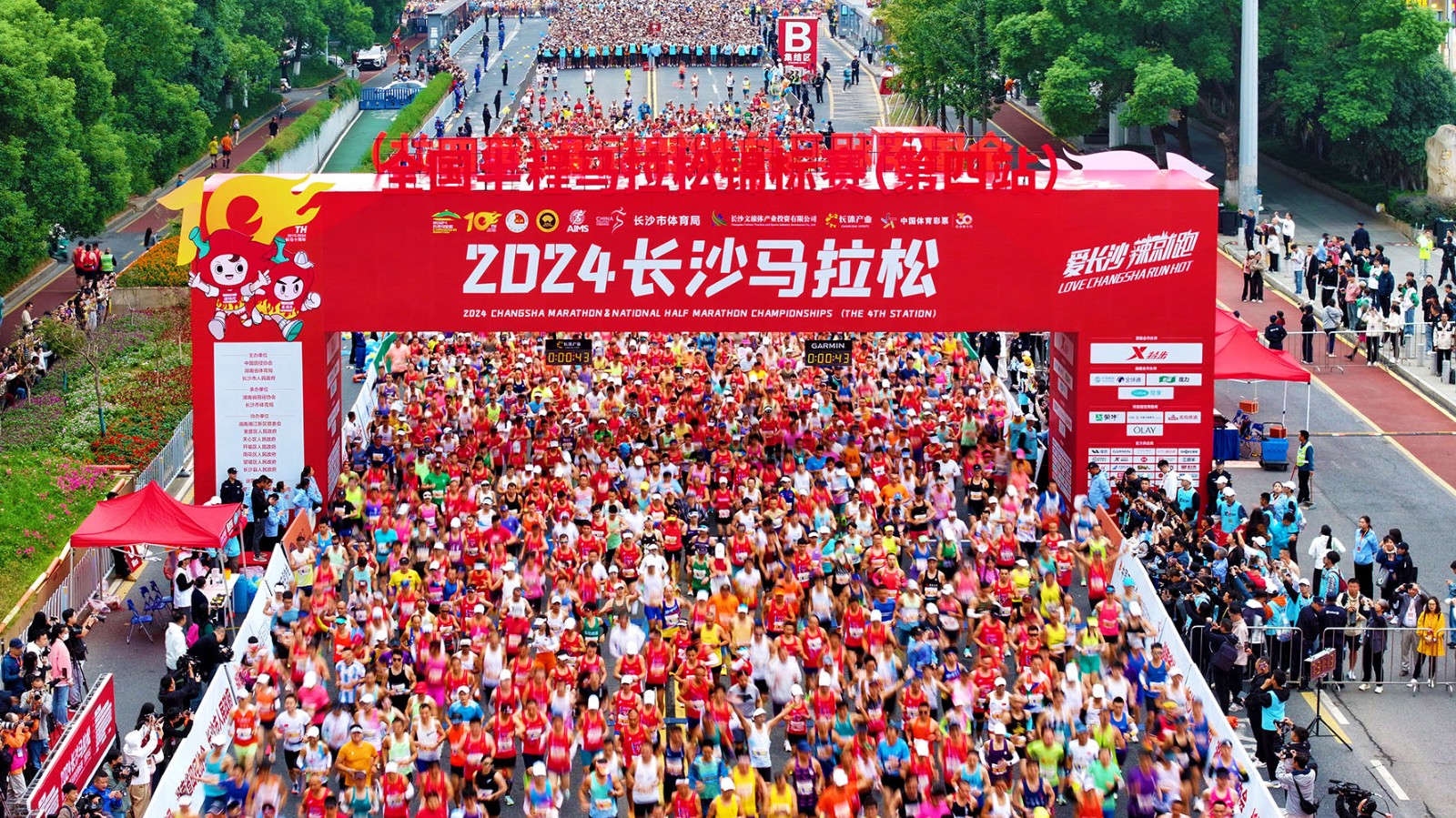 湘江之濱,金秋長(zhǎng)沙美如畫;長(zhǎng)馬十年,用腳步感受城市的脈搏!10月20日7:30分,隨著清脆的發(fā)令槍響,2024長(zhǎng)沙馬拉松暨全國(guó)半程馬拉松錦標(biāo)賽(第四站)在芙蓉中路賀龍?bào)w育中心東廣場(chǎng)正式起跑,三萬(wàn)余名跑友匯聚成紅色的海洋,歡呼著奔赴這場(chǎng)長(zhǎng)馬十年之旅。